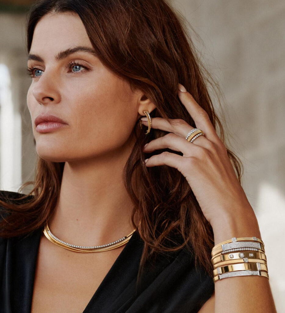 Bangle in oro giallo con station in pavè di diamanti
