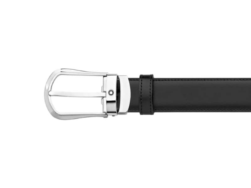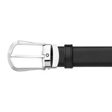Rounded trapeze shiny palladium finish pin buckle. Self-adjustable, 3 cm x 120 cm, reversible black and brown leather strap to match any business suit. Refined and understated, this timeless model will satisfy clients looking for a classic business belt.