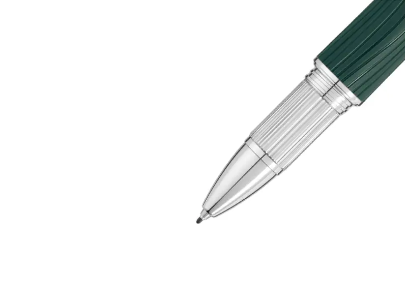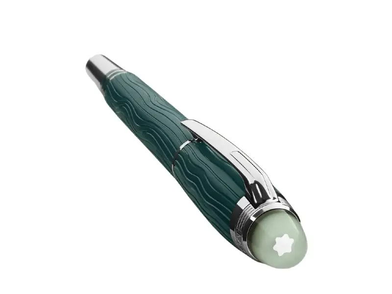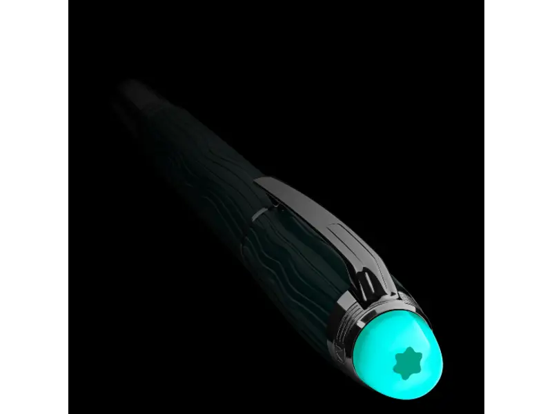 StarWalker PolarGreen brings the beauty of the Northern Lights to life. On Earth, humans can gaze skyward and be transported to realms of wonder as they witness their grand spectacle. The dome on the cap top is made of transparent resin and glows in low light, recalling the enchanting dancing auroras of the night sky. The wave pattern on the dark green precious resin of the cap and barrel admirably captures the spectral sheen of the lights, and the matte finish accentuates the seemly reflections. For a finishing touch, the fineliner is complemented by its platinum fittings.