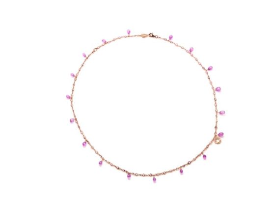 An 18kt white gold strand, made with the Flat Coil technique, is embellished by five plaques studded with brilliant-cut diamonds. The result is a necklace marked by a linear design and timeless elegance.