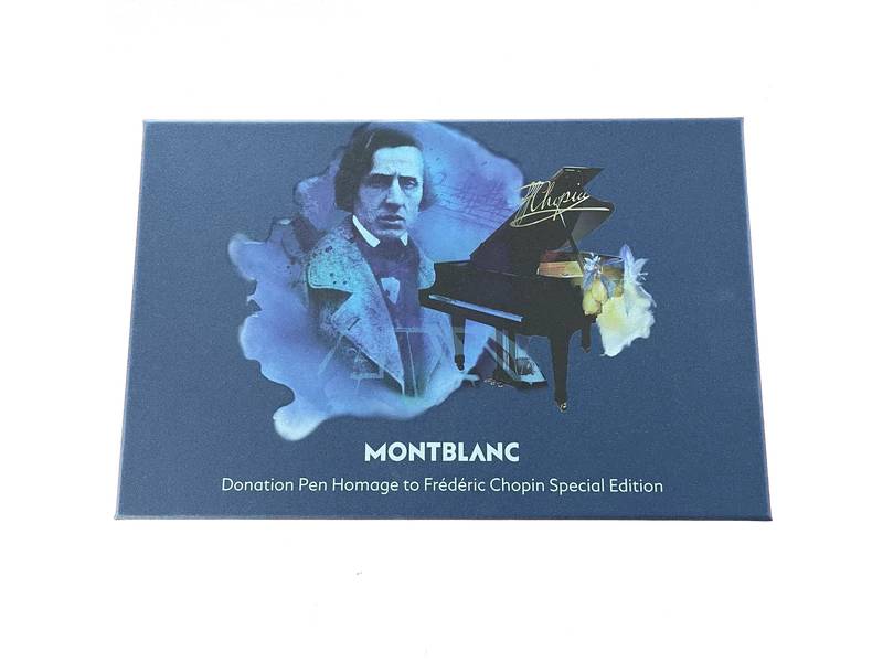 The Montblanc Donation Pen Collection is honouring world-famous classical musicians of the past decades. The Donation Pen supports carefully selected cultural projects with a donation of 20 euros per fountain pen and 10 euros per ballpoint or rollerball. This year’s edition pays tribute to Frédéric Chopin, a Polish composer and virtuoso pianist. As an homage to his admiration for the piano, the platinum-coated clip is shaped like a piano hammer. Known for his famous “La Note Bleue”, the ink window of this Special Edition comes in a blue colour. The cap ring features the musical notes of Chopin’s first nocture, “Nocturne in B-flat minor, Op. 9, No.1”, which was published in 1832. The cap and barrel are made out of black precious resin combined with platinum-coated fittings. The special gift box additionally contains a little note pad featuring decorated with musical notes of his famous nocturne. The handcrafted Au 585 solid bicolor gold nib features a portrait of Frédéric Chopin.