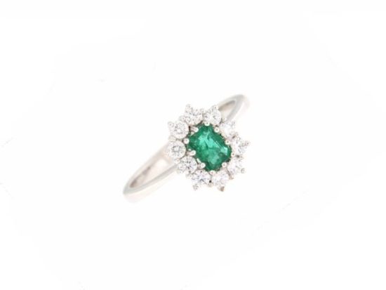 Caratura: Smeraldo 0.44 ct; diamanti 0.13 ct.