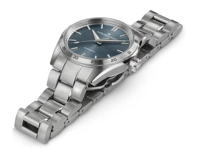 Pensata per chi ama l’equilibrio tra stile e funzionalità, la linea Jazzmaster Performer offre un look sporty-chic accattivante. Animato dal movimento automatico H-10 con riserva di carica fino a 80 ore, questo Jazzmaster Performer Automatic presenta una cassa in acciaio da 34 mm messa in risalto da un sobrio quadrante blu chiaro e un raffinato bracciale in acciaio.