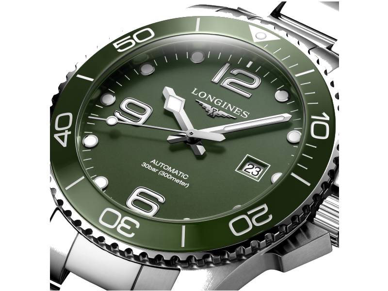 Quadrante: Verde opaco con applicati numeri arabi e indici. Lancette argentate lucide.