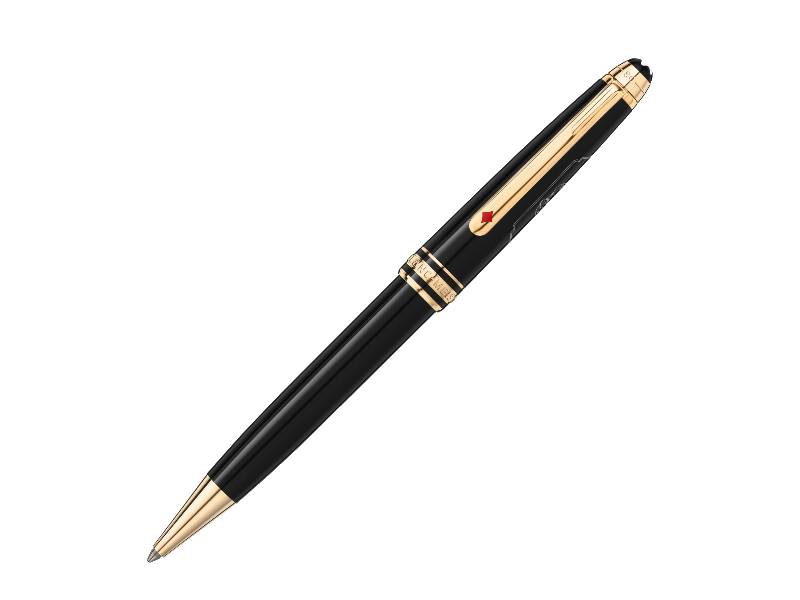 La collezione Meisterstück Around the World in 80 Days si ispira al famoso romanzo di avventura di Jules Verne “Il giro del mondo in 80 giorni”. La penna a sfera Classique in pregiata resina antracite trae ispirazione dalla seconda tappa del viaggio, da Bombay a Yokohama. In questa seconda tappa avventurosa, i protagonisti viaggiano su un maestoso elefante, che compare in un cartiglio sul cappuccio. La clip sfoggia un asso di quadri laccato rosso, che rappresenta la scommessa di Fogg di compiere il viaggio in 80 giorni. La parte superiore del cappuccio presenta la goffratura della durata del viaggio, 25 giorni da Bombay a Yokohama e 80 giorni in totale.
