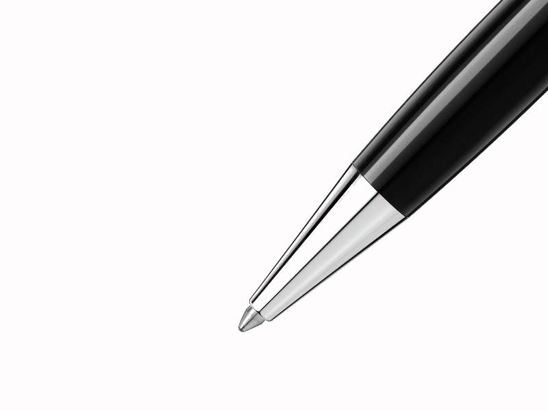La lussuosa penna a sfera Meisterstück Classique diventa un’icona esclusiva del design Montblanc. Il corpo e il cappuccio sono in pregiata resina nera con emblema Montblanc bianco intarsiato. I tre anelli finitura platino con goffratura del marchio Montblanc e la clip finitura platino con numero di serie individuale mettono ulteriormente in risalto il design intramontabile di questa lussuosa penna a sfera. Per esprimere la vostra personalità, Montblanc offre l’incisione gratuita di nomi o iniziali sul lato destro oppure sull’elegante clip finitura platino. In un’epoca in cui è sempre più difficile distinguersi, i nostri refill per penna a sfera Mystery Black (nero), Pacific Blue (blu), Nightfire Red (rosso), Fortune Green (verde), Amethyst Purple (viola) e Barbados Blue (azzurro) consentono di evidenziare uno stile di scrittura individuale.