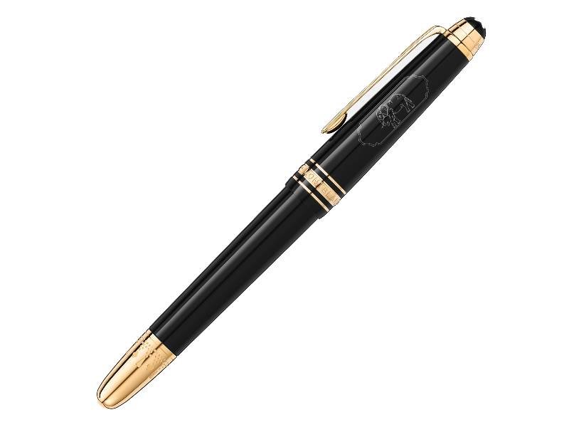 La collezione Meisterstück Around the World in 80 Days si ispira al famoso romanzo di avventura di Jules Verne “Il giro del mondo in 80 giorni”. La stilografica Classique in pregiata resina antracite trae ispirazione dalla seconda tappa del viaggio, da Bombay a Yokohama. In questa seconda tappa avventurosa, i protagonisti viaggiano su un maestoso elefante, che compare in un cartiglio sul cappuccio. La clip presenta un asso di quadri laccato rosso e il cono reca l’incisione di un motivo ispirato ai gioielli della Principessa Auda e ai semi delle carte, che rappresentano la scommessa di Fogg di compiere il viaggio in 80 giorni. La parte superiore del cappuccio presenta la goffratura della durata del viaggio, 25 giorni da Bombay a Yokohama e 80 giorni in totale. Lo strumento da scrittura è completato da un pennino realizzato a mano in oro 14K, decorato con una mongolfiera e con le date 20/10 e 14/11: Fogg lascia, infatti, Bombay il 20 ottobre alle 20:00 e Yokohama il 14 novembre alle 18:00.