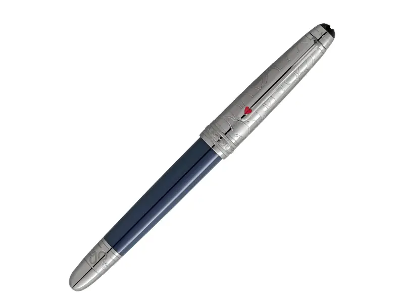 La collezione Meisterstück Around the World in 80 Days si ispira al famoso romanzo di avventura di Jules Verne “Il giro del mondo in 80 giorni”. La stilografica Solitaire Doué Classique, in pregiata lacca blu scuro lucida e con cappuccio in metallo, racconta l’epico viaggio del Signor Fogg e di Passepartout. Nell’ultima tappa da Yokohama a Londra passando dagli Stati Uniti, il duo attraversa il vasto continente americano in treno. Contempla gli elaborati dettagli: un treno elegantemente inciso al laser sul cappuccio, un motivo catena di sicurezza sul cono, che riproduce un movimento rotante quando Passepartout stacca il treno dalla locomotiva per salvare l’equipaggio attaccato dai Sioux. Il design del cappuccio immortala le valvole della pressione e il fumo della locomotiva, mentre la clip sfoggia l’asso di cuori laccato rosso, simbolo dell’unione di Phileas Fogg e la principessa Auda. Inoltre i semi delle carte rappresentano l’ardita scommessa di Fogg di concludere il viaggio in soli 80 giorni. La parte superiore del cappuccio reca goffrata la cronologia del viaggio: 36 giorni da Yokohoma a Londra, che culminano nel totale di 80 giorni in giro per il mondo. A esaltare questo strumento da scrittura, un pennino realizzato a mano in oro 18 K con inciso 14/11, tributo alla data della partenza di Fogg da Yokohama, e 21/12, data di rientro al club londinese per vincere la scommessa secondo il suo ambizioso piano. È inoltre decorata con la rappresentazione di una mongolfiera, rimando al primo romanzo di avventura di Jules Verne.