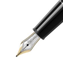 La stilografica Meisterstück Classique diventa un’icona esclusiva del design Montblanc. Il corpo e il cappuccio sono in pregiata resina nera con emblema Montblanc bianco intarsiato. I tre anelli finitura platino con goffratura del marchio Montblanc, la clip finitura platino e un pennino in oro lavorato a mano mettono ulteriormente in risalto il design intramontabile di questa stilografica iconica. Per esprimere la vostra personalità, Montblanc offre l’incisione gratuita di nomi o iniziali. In un’epoca in cui è sempre più difficile distinguersi, il nostro inchiostro in cartucce Mystery Black (nero), Royal Blue (blu royal), Burgundy Red (bordeaux), Irish Green (verde), Lavender Purple (viola), Midnight Blue (blu-nero) e Oyster Grey (grigio) consente di evidenziare uno stile di scrittura individuale.