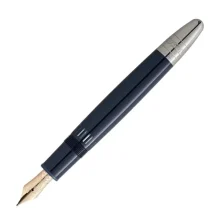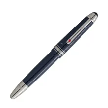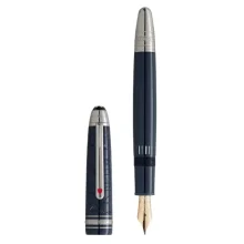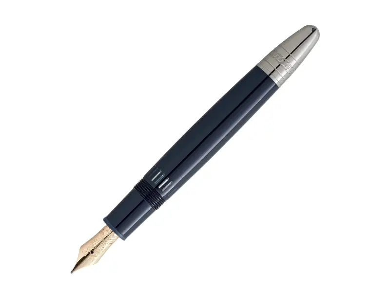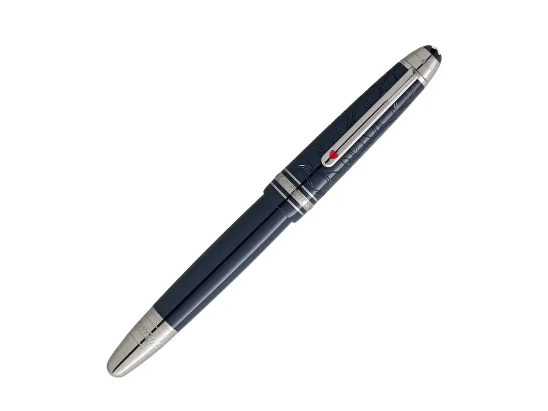 La collezione Meisterstück Around the World in 80 Days si ispira al famoso romanzo di avventura di Jules Verne “Il giro del mondo in 80 giorni”. La stilografica LeGrand, decorata con pregiata resina blu scura, racconta l’epico viaggio del Signor Fogg e di Passepartout. Nell’ultima tappa da Yokohama a Londra passando dagli Stati Uniti, il duo attraversa il vasto continente americano in treno. Contempla gli elaborati dettagli: un treno elegantemente inciso al laser sul cappuccio, un motivo catena di sicurezza sul cono, che riproduce un movimento rotante quando Passepartout stacca il treno dalla locomotiva per salvare l’equipaggio attaccato dai Sioux. Il design del cappuccio immortala le valvole della pressione e il fumo della locomotiva, mentre la clip sfoggia l’asso di cuori laccato rosso, simbolo dell’unione di Phileas Fogg e la principessa Auda. Inoltre i semi delle carte rappresentano l’ardita scommessa di Fogg di concludere il viaggio in soli 80 giorni. La parte superiore del cappuccio reca goffrata la cronologia del viaggio: 36 giorni da Yokohoma a Londra, che culminano nel totale di 80 giorni in giro per il mondo. A esaltare questo strumento da scrittura, un pennino realizzato a mano in oro 14 K con inciso 14/11, tributo alla data della partenza di Fogg da Yokohama, e 21/12, data di rientro al club londinese per vincere la scommessa secondo il suo ambizioso piano. È inoltre decorata con la rappresentazione di una mongolfiera, rimando al primo romanzo di avventura di Jules Verne.